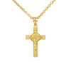 Solid Gold St. Benedict Crucifix Pendant Necklace (1.10")(Available In Yellow/Rose/White/Two Tone Gold Gold)