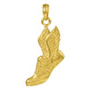 14K Yellow Gold Winged Running Shoes Pendant Necklace