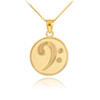 Solid Yellow Gold Textured Bass F-Clef Charm Small Pendant Necklace