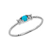 BoHo Elegant Turquoise and White Topaz Stackable Rope Ring in White Gold