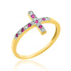 Gold Sideways Cross Red Zirconia Ring(Available in Yellow/Rose/White Gold)