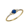 Dainty Elegant Sapphire and Diamond Rope Ring in Yellow Gold