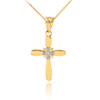 Solid Gold Dainty Solitaire Diamond Cross Charm Pendant Necklace(Available in Yellow/Rose/White Gold)