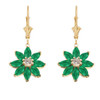 14k Gold Emerald and Diamond Daisy Leverback Earrings (Available in Yellow/Rose/White Gold)