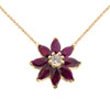 14K Solid Gold Genuine Ruby and Diamond Daisy Necklace