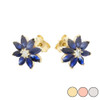 Genuine Sapphire and Diamond Daisy Stud Earrings In 10K & 14K