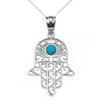 925 Sterling Silver Hamsa Hand With Turquoise Evil Eye Pendant Necklace