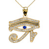 The Studded Egyptian Eye of Horus Wedjat Blue Sapphire Pendant is a mesmerizing and spiritually significant piece of jewelry that beautifully combines aesthetics and symbolism.