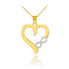 Polished 2-tone Gold Open Heart Infinity Pendant Necklace with a diamond.