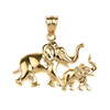 Gold Elephant with Mother and Child Charm Pendant Necklace