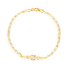 14K Gold 6.5" Quinceañera 15 Años Heart Figaro Chain Bracelet with Cubic Zirconia