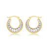 14K Two-Tone Gold Milgrain Ribbed Huggie Hoop Earrings