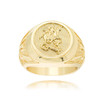 The Beaded Patron Saint George Dragon Cross Signet Ring features a striking design with Saint George triumphing over the dragon, symbolizing courage and faith. The beaded texture enhances the ring's intricate detail, while crosses on the sides of the band add an extra layer of religious symbolism and significance.