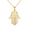 The Diamond Cut Filigree Hamsa Hand Pendant Necklace is a beautifully detailed piece that embodies protection, luck, and positivity. The Hamsa hand, a symbol known for warding off negativity and bringing good fortune, is intricately designed with delicate filigree work, creating a timeless and elegant look. Diamond-cut accents add a subtle shimmer, enhancing its artistic craftsmanship.
