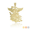 Gold Engravable Patron Saint Michael Archangel Reversible Pendant Necklace (Available in Yellow/Rose/White)