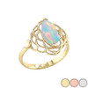 Gold Marquise Cut Lab Created Opal Birthstone Filigree Ring (Available in Yellow/Rose/White Gold)