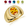 Gold Oval Gemstone Diamond Halo Signet Ring (Available in Yellow/Rose/White Gold)