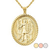 This Patron Saint Michael Archangel Medallion Pendant Necklace is a powerful symbol of protection, courage, and faith. Featuring an intricately detailed depiction of Saint Michael, the archangel known as the defender against evil, this medallion carries deep spiritual significance. The finely crafted design highlights his strength and divine presence, making it a meaningful piece for those seeking guidance and protection.
