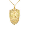 The Patron Saint Michael Archangel Shield Pendant Necklace features a bold and symbolic design, showcasing Saint Michael in a powerful stance with a shield. The shield represents divine protection, and the detailed engraving of the archangel emphasizes strength, courage, and spiritual defense.
