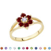 Gold Personalized Birthstone Daisy Flower Ring (Available in Yellow/Rose/White Gold)