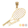 Gold Personalized Name Tennis Racket Sports Pendant Necklace (Available in Yellow/Rose/White Gold)