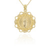 Gold Round Saint Mary Pendant Necklace (Available In Yellow/Rose/White/Two Tone Gold Gold)