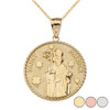 Solid  Gold Saint Patrick Clovers Medallion Pendant Necklace(Available in Yellow/Rose/White/Two/Tone)
