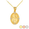 Saint Nicholas Pray for Us Engravable Oval Diamond Pendant Necklace in Gold (Available in Yellow/Rose/White Gold)