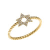 Solid Gold Dainty Star of David Diamond Rope Design Ring
