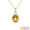 Genuine Citrine Oval-Shaped Clover Pendant Necklace in Gold (Yellow/Rose/White)