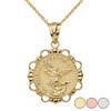 Solid Gold Round Saint Michael Pendant Necklace (Available In Two Tone/Yellow/Rose/White Gold)