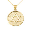Solid Gold Star of David Round Pendant Necklace.