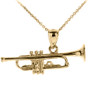 Jazz up your style with a gleaming Yellow Gold pendant necklace depicting your favorite musical instrument. This detailed Trumpet features a three-dimensional design that is approximately 33.02mm (1.3") in width by 68.58mm (2.7") in length, which includes the tapered bail.