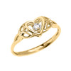 Solid Gold Trinity Knot Heart Solitaire CZ (Cubic zirconia) Engagement Proposal Ring(Available in Yellow/Rose/White Gold)