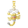 Tri-Color Gold CZ Scorpion Charm Pendant, made of yellow, white, and rose gold.