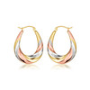 Tri-Color Gold Diamond Cut Twisted Oval Hoop Earrings