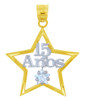 Celebrate a significant milestone with the Two-Tone Cubic Zirconia Star 15 Años Quinceañera Pendant Necklace, a stunning piece that perfectly embodies the spirit of this cherished tradition. This necklace features a beautifully designed star pendant, where the elegant "15 Años" inscription is beautifully integrated with a sparkling star-shaped cubic zirconia stone. The eye-catching two-tone design adds a unique flair. This design symbolizes dreams and aspirations, making it the ideal accessory for the young woman transitioning from childhood to womanhood, ensuring she feels special and radiant on her big day.