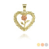 Two-Tone Gold Diamond Cut Heart Rose Flower Pendant Necklace (Available in Two-Tone/Yellow/Rose/White Gold)