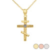 Two-Tone Gold Diamond Russian Orthodox Cross Pendant Necklace (Available in Yellow/Rose/White Gold)