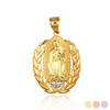 The Two-Tone Our Lady of Guadalupe Laurel Wreath Milgrain Pendant Necklace beautifully merges spiritual significance with elegant design. At the center, the image of Our Lady of Guadalupe, revered for her protection and love, is surrounded by a laurel wreath, symbolizing divine victory and grace. The two-tone finish adds a modern touch, while the milgrain detailing around the edges enhances the pendant's intricate, timeless appeal.
