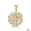 Two-Tone Gold Saint Benedict Cubic Zirconia Halo Medallion Pendant Necklace (Available in Small/Large & Yellow/Rose/White Gold)