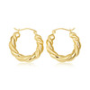 Yellow Gold Diamond Cut Satin Finish Twist Hoop Earrings