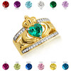 Yellow Gold Diamond Irish Celtic Claddagh Crown Heart Birthstone Ring