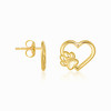 Yellow Gold Dog Paw Print Heart Stud Earrings