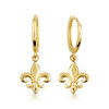 Yellow Gold French Fleur-de-Lis Drop Huggie Hoop Earrings