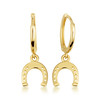 Yellow Gold Lucky Horseshoe Drop Huggie Hoop Earrings