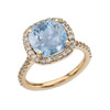 Halo Cushion 4 Ct Checkerboard Aquamarine(LCA) and Diamond Yellow Gold Engagement and Proposal/Promise Ring
