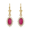 14k Yellow Gold Marquise Ruby and Diamonds Dangling Earrings