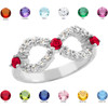 Solid 925 Sterling Silver rugged finish Infinity clear cubic zirconia ring with birthstone CZ accents.