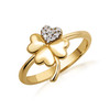 10K/14K Solid Gold Lab Grown Diamond 4 Leaf Lucky Heart Clover Ring